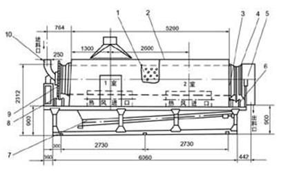 3、根據產量要求,物料含水率高低,轉動干燥室可劃分為若個單元,各單元有相對獨立的加熱裝置、風機及干燥室。對各單元進行合理的布局組合,有利于進一步提高熱效率,縮短干燥時間。
